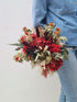 Dana droogboeket werd samengesteld uit droogbloemen zoals rode hortensia, bordeaux babala, groene eucalyptus, beige ruscus, carthamus, groene avena en tarwe. Dana is een M-L droogboeket van formaat en zal prachtig als geschenk voor je verpakt worden.