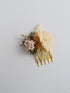 Elegant angel: een neutraal haarkammetje met een elegante stijl. We werkten voor dit accessoire met natuurlijke tinten en combineerden mosgroen met wit, nude en aardetinten. Deze goudkleurige haarkam is dankzij zijn kleine en elegante formaat een prima haaraccessoire voor kinderen op een communie -of lentefeest, of voor elke bruid die een klein bloemenaccent wil toevoegen aan haar outfit.
