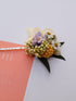 Op zoek naar een speels en leuk accent van bloemen voor jouw party? Onze Funky haarschuiver bestaat uit mauve, witte, perzikkleurige en groene tinten en zorgt voor een klein bloemenfeestje. Funky is een prima bloemenspeld om met je haar los te dragen of als leuk accent bij een opgestoken kapsel. Funky bestaat uit droogbloemen zoals mauve statice, perzikkleurige achillea, rijstbloemen, eucalyptusblaadjes en crèmekleurige hortensia.