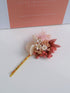 Onze bloemenaccessoires worden met de grootste zorg en oog voor detail gemaakt. Deze speelse haarspeld in roze tinten creëert een romantische en vrouwelijke look voor elke gelegenheid. Strawberry Field werd gemaakt van droogbloemen waaronder kerskleurig gipskruid, blush statice, crèmekleurige hortensiablaadjes en zachtroze asparagus.