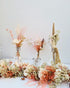 Op zoek naar een subtiel bloemenaccent voor op je feesttafels dat toch een grote impact kan maken? Dan zijn onze opgevulde bloemenvaasjes met droogbloemen een geschikte oplossing. Verras je gasten met een vleugje magie en ga voor subtiel, gekleed of een weelderig effect, afhankelijk van de hoeveelheid vaasjes waar je voor kiest. Onze vaasjes worden opgemaakt in basic glazen vaasjes en zijn ook heel geschikt om als cadeautje aan je gasten mee te geven op het einde van je bruiloft.