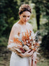 Looking for an extravagant bridal bouquet with a wow factor that was composed of dried flowers? Our luxurious bridal bouquet in size Large is suitable for every bride who is looking for a real statement bouquet that will blow everyone away. As event florists, we love creating this eye-catcher that will look great in your wedding photos. The Large bridal bouquet has a subtle X shape and consists of lush dried flowers such as pampas, reed plume, strelitzia leaves or hydrangea. In this beautiful dried bouquet we also work with special preserved flowers such as garden roses, dahlias, chrysanthemums or peonies that can be beautifully presented in this luxurious bouquet. Because the bridal bouquet consists entirely of dried flowers, you can enjoy all these beautiful flowers for months to come.