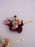 Sweet chocolat: a colorful hairpin composed in burgundy red, cherry and pink tones. This cheerful hair slider is a nice accent to any festive outfit and perfect to wear to a wedding or communion party. Sweet Chocolat was made from dried flowers including burgundy hydrangea petals, daisies, pink breeza, pink broom and nude glixia flowers.
