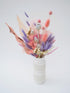 Flora is a dry bouquet in pastel shades that blends easily into a modern interior. The bouquet was composed of dried flowers such as poppy, nigella, pink cardoen and craspedia, purple bunny tails, pink palmsun and white ruscus and strelitzia. Flora is a small dry bouquet in size and will be packaged as a gift for you.