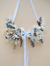 Blue Skies, één van onze allerleukste mini's. Deze bloemenkrans is met zijn evenwichtige kleurenpalet geschikt voor ongeveer elke woonkamer. De droogbloemen die werden gebruikt om deze leuke en moderne krans samen te stellen zijn bruine tatarica, witte ruscus en glixia, groenblauwe eucalyptus, witte varens, lunaria en cremekleurige skeletbladeren.