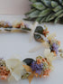 Funky feels, een weelderige en kleurrijke bloemenkroon om jouw outfit mee op te fleuren. Dit luxueuze kroontje werd samengesteld uit zomerse tinten en doet ons aan eeuwige zomerdagen denken, een ideaal haaraccessoire voor een zomers trouwfeest! Funky Feels is een handgemaakte bloemenkroon en geschikt voor bruiden die op zoek zijn naar kleur en vrolijkheid op hun huwelijksdag. Funky Feels wordt in ons atelier te Mechelen gemaakt en bestaat uit droogbloemen waaronder mauve statice, witte hortensia, eucalyptus, perzikkleurige glixia bloemen, breeza en oranje ruscus.